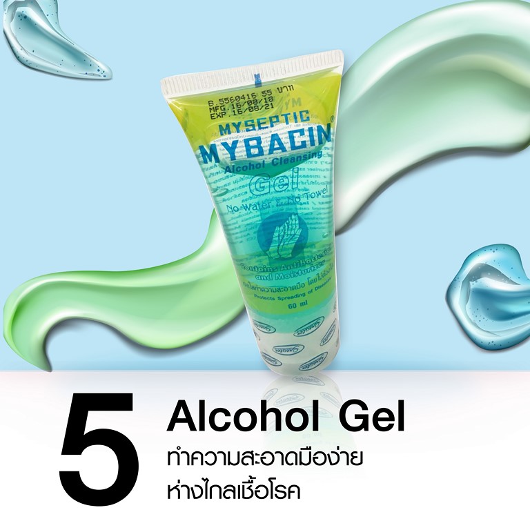 สเปรย์แอลกอฮอลล์และเจลแอลกอฮอลล์ที่สามารถใช้ทำความสะอาดมือ ควรมีความเข้มข้นปริมาตรอยู่ที่ 70% ขึ้นไป ซึ่งสามารถใช้ยับยั้งเชื้อโรคและไวรัสได้ดี เป็นของที่แนะนำให้พกติดตัวไว้ตลอดเวลา เพราะสะดวกและหยิบขึ้นมาใช้เมื่อไรก็ได้ มีให้เลือกใช้ทั้งแบบสเปรย์และแบบเจล เพราะมือของเราเป็นสิ่งที่นำพาเชื้อโรคเข้าสู่ร่างกายได้ง่ายที่สุด แนะนำให้หมั่นล้างมือบ่อยๆ ด้วยผลิตภัณฑ์ที่ช่วยป้องกันการสะสมของแบคทีเรีย Mybacin Alcohol Cleansing และสินค้าเพิ่มเติมอื่นๆ