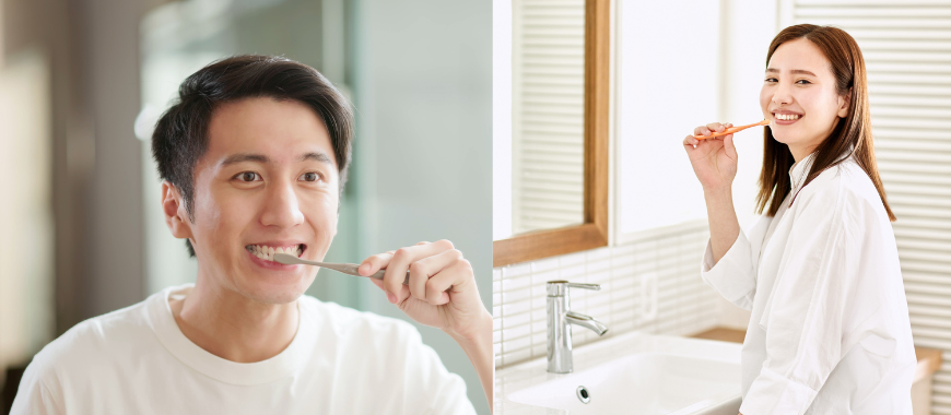 1. แปรงฟันอย่างน้อยวันละ 2 ครั้ง ด้วยแปรงขนนุ่ม