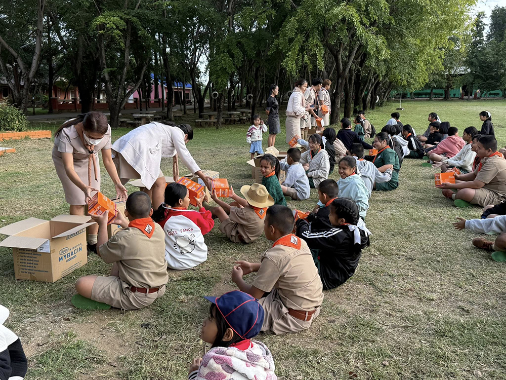 บรรยากาศแห่งความอบอุ่น – เด็ก ๆ ตั้งใจรับผลิตภัณฑ์ด้วยรอยยิ้ม ในภาพเหล่านี้ เราจะเห็นความสุขของเด็ก ๆ ที่ดีใจในการได้รับผลิตภัณฑ์ที่มีประโยชน์ และคุณครูที่ได้ผลิตภัณฑ์คุณภาพเพื่อนำไปใช้ดูแลสุขภาพนักเรียนในระยะยาว