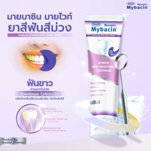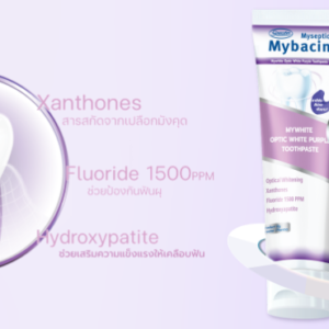 ยาสีฟัน Mybacin มายไวท์ เพื่อฟันขาว และ ฟันแข็งแรง ด้วยเทคโนโลยี อ๊อพติคอล ไวท์เทนนิ่ง ฟลูออไลน์ 1,500 PPM