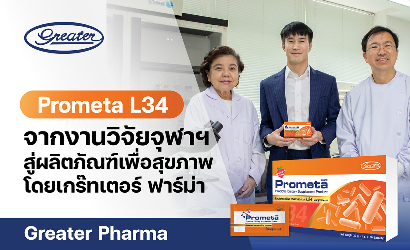บริษัท เกร๊ทเตอร์ ฟาร์ม่า จำกัด รู้สึกเป็นเกียรติและภูมิใจอย่างยิ่งที่ได้รับความร่วมมือ ในการถ่ายทอดเทคโนโลยี เชื้อโพรไบโอติก Lactobacillus rhamnosus L34 หรือ L34 ซึ่งเป็นเชื้อสายพันธุ์ไทยชนิดใหม่ของโลก จากทีมวิจัย คณะแพทยศาสตร์ จุฬาลงกรณ์มหาวิทยาลัย โดยเป็นการนำผลงานวิจัย ซึ่งได้รับการศึกษายืนยันทางคลินิกและการศึกษาถึงคุณภาพและความปลอดภัยแล้ว มาพัฒนาต่อยอดสู่การเป็นผลิตภัณฑ์โพรไบโอติกเพื่อการดูแลสุขภาพของคนไทย